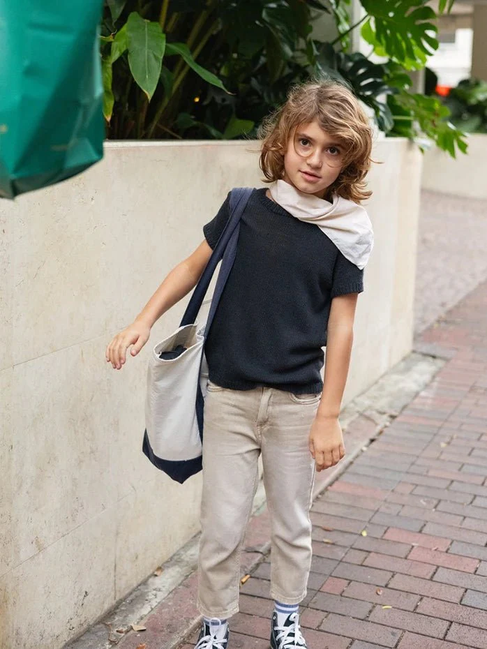 T-tröjan stickas uppifrån och ner i Tynn Line.