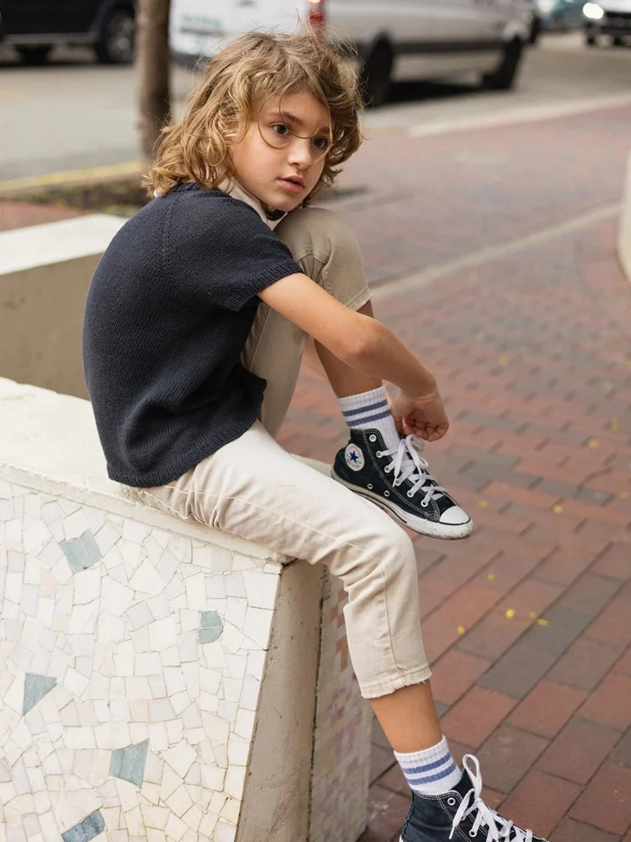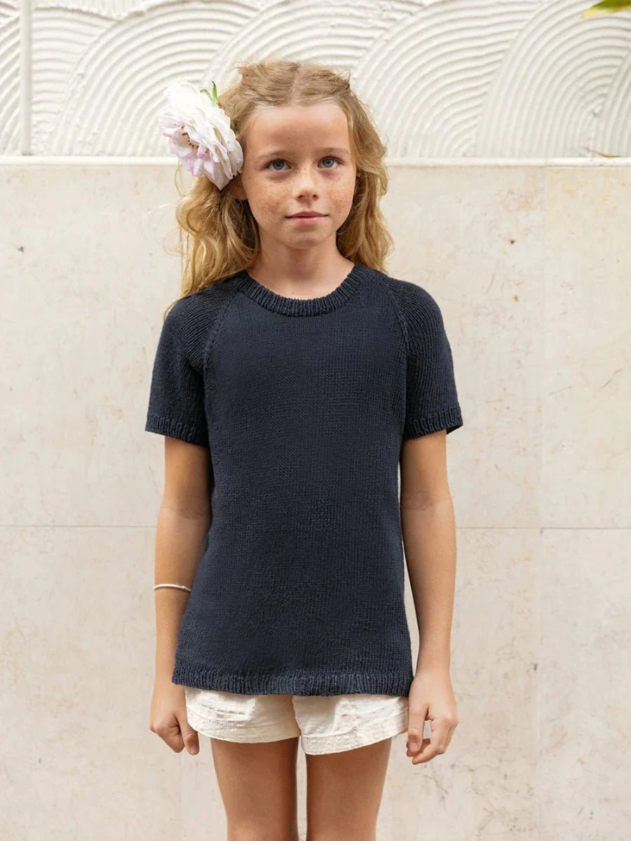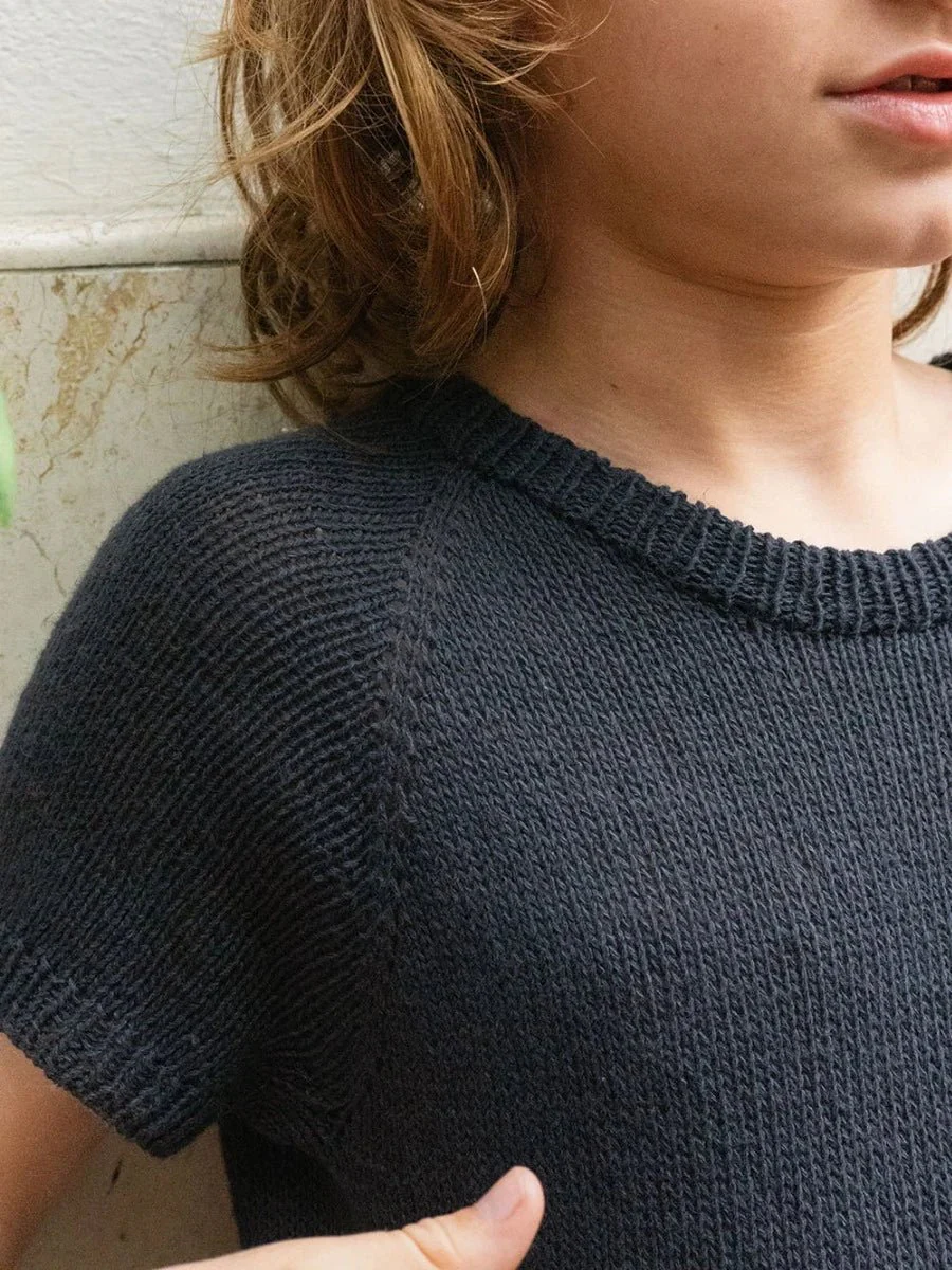 Enkeltmönster / 2405 Sommarbarn / Nr. 5 Robin Tee Junior T-tröjan stickas uppifrån och ner i Tynn Line. Information om produkten Det läggs först upp maskor till oket, som stickas fram och tillbaka med raglanökningar och ökningar för att forma halsringningen. Arbetet samlas ihop och stickas vidare runt. När alla maskorna är utökade, delas arbetet […]