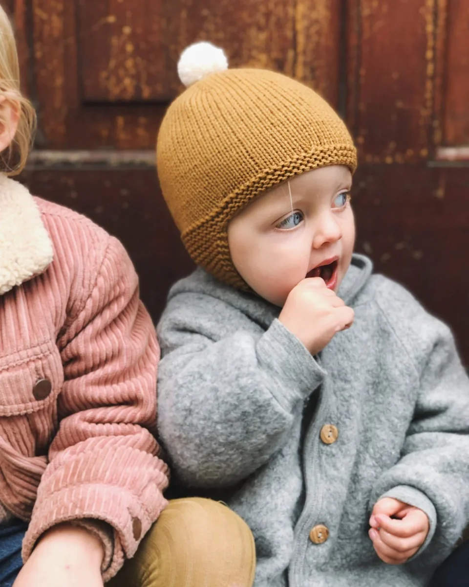 Den gyllene Alberts Pilotmössa är stickad i Double Sunday från Sandnes Garn i färgen Croissant [2345]