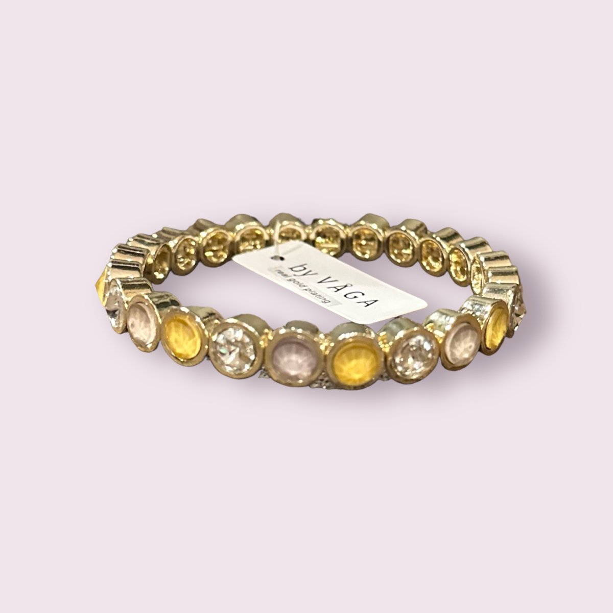 Superfint armband med kristaller på resår. plätering av äkta guld