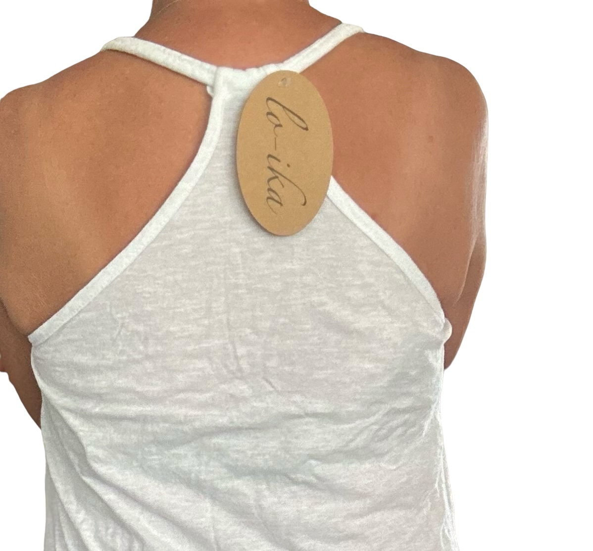 Snyggt linne med smala band och brottarrygg. Linnet är lätt a-linjeformat och har rund halsringning. Bomull