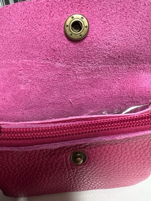 Söt portmonnä i äkta läder. Portmonnän har en tryck-knapp samt dragkedja.